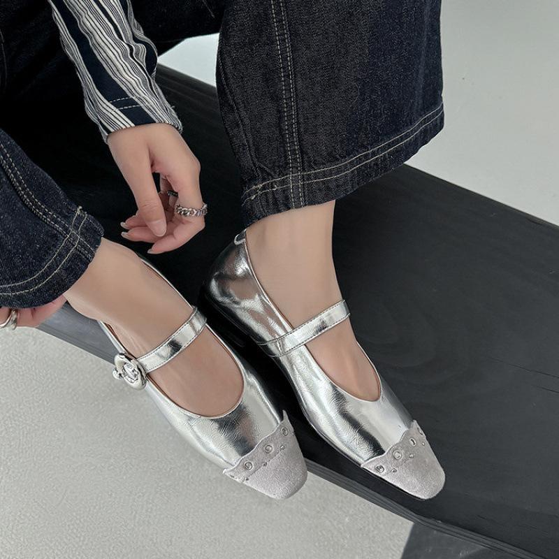 Round head leather single shoes four seasons single shoes new beef tendon sole fashion single shoes women's buckle non-slip soft-soled sheepskin