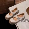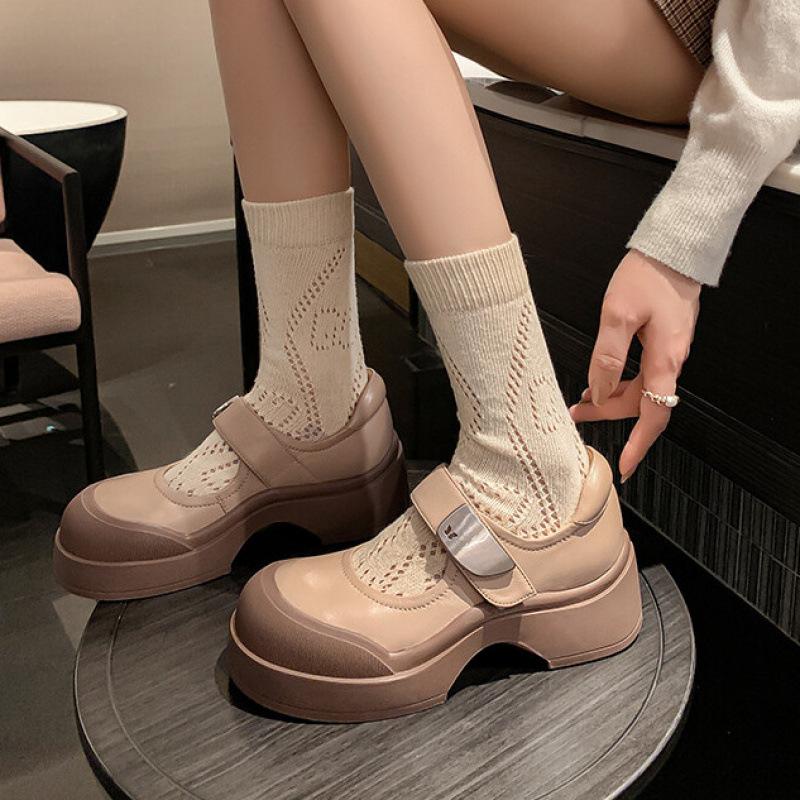 New leather women's casual single shoes platform non-slip medium heel large size shoes comfortable single shoes women's fashion sheepskin women's shoe