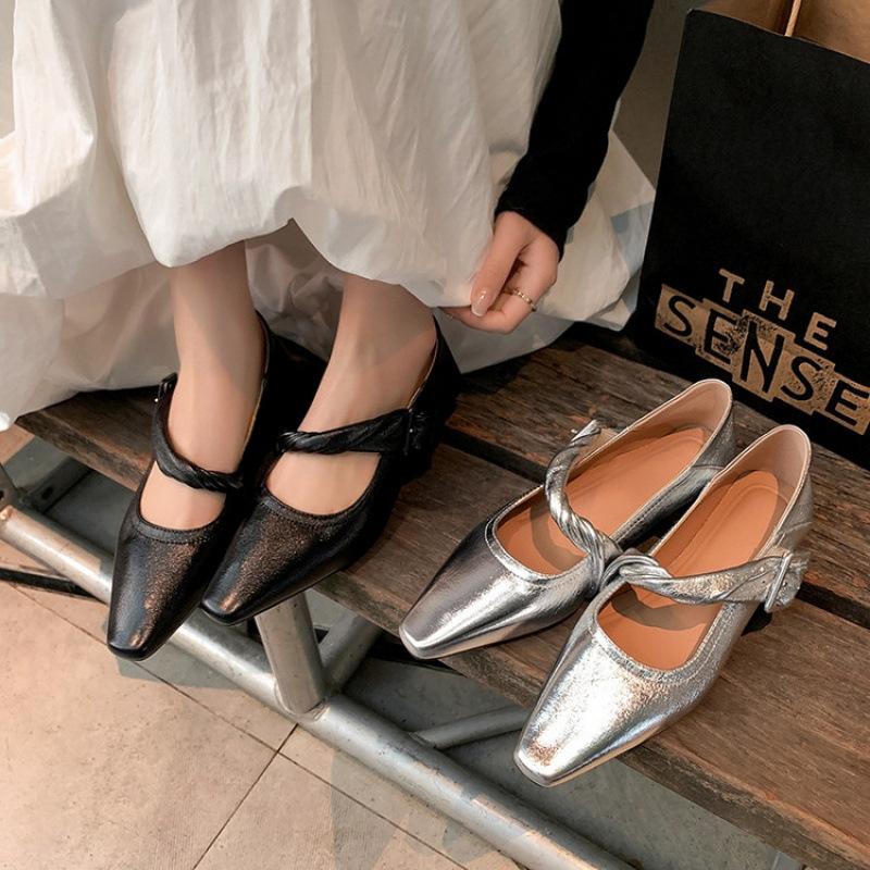 New women's fashion single shoes pointed leather non-slip beef tendon sole sheepskin women's shoes low heel large size four-season small leather shoes