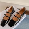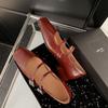 New leather fashion single shoes women's non-slip soft sole large size low heel square head buckle sheepskin women's shoes four seasons small leathe