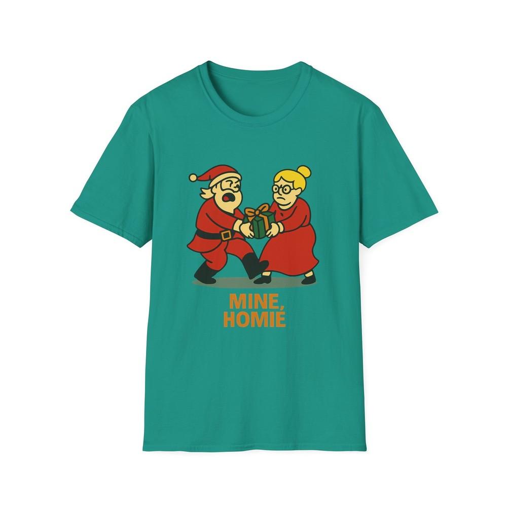 Unisexové tričko Softstyle Santa Paní Clausová Přetahování lanem Vánoční chaos Legrační