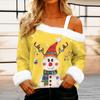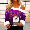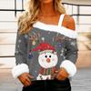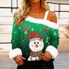 Dámská ležérní móda Sexy top s odhalenými rameny a vánočním vzorem, s dlouhým rukávem a kulatým výstřihem