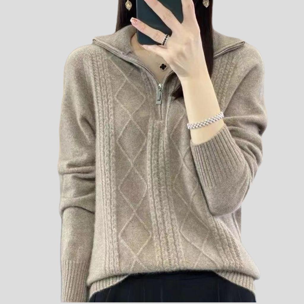 Autumn Winter Women's Stand Collar Sweater Solid Color Pullover Sweater Knit Top
