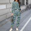 Dámské soupravy 2dílné tričko s kulatým výstřihem a dlouhým rukávem, potištěné tepláky s kapsami