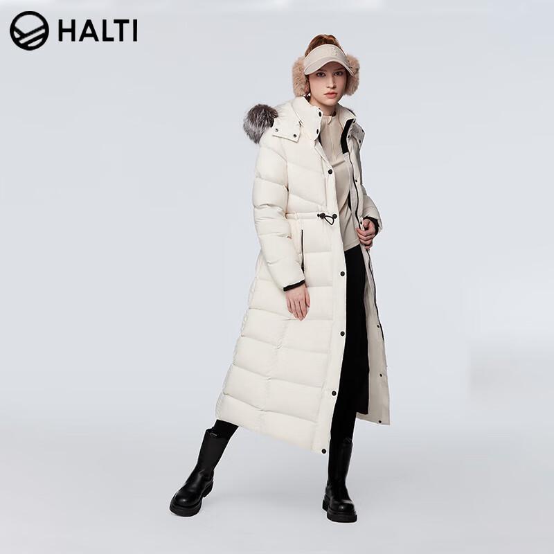 HALTI Women's Snowfield White Long Hooded Warm Goose Down Jacket HDTEA28230S