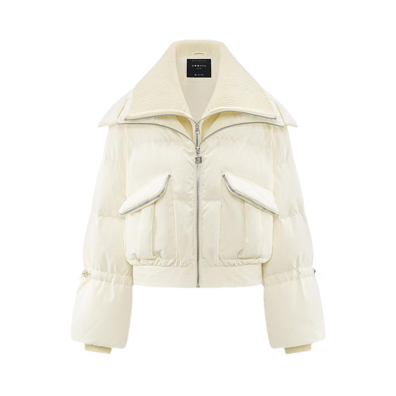 Ailaiyi Women's Stylish Short Goose Down Jacket with Knit Lapel