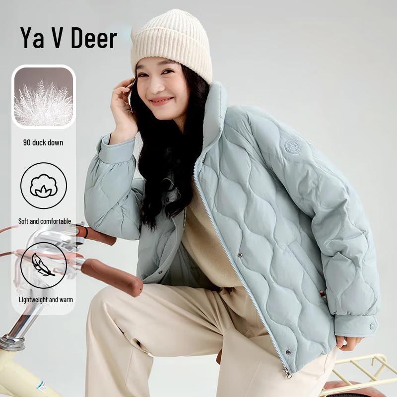 Yalulu Women's Lightweight Wave Quilted Stand Collar Down Jacket