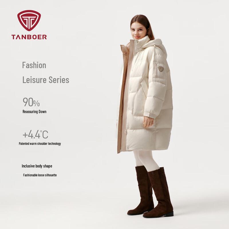 Tankboer Women's Mid-Length Detachable Hood Duck Down Jacket