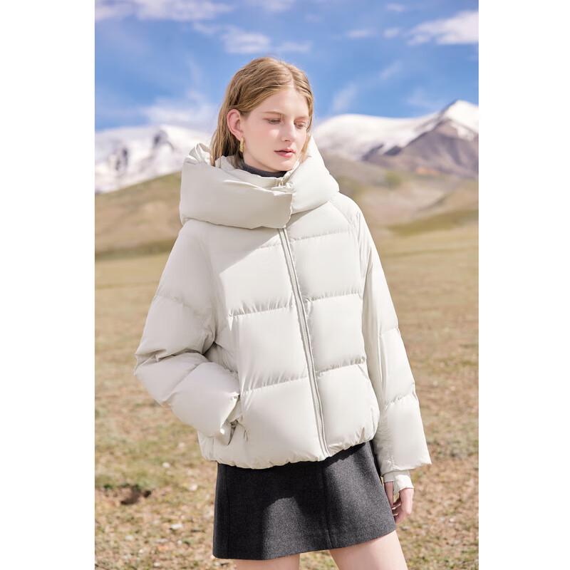 Qiusbuiyiren Dámská malá krátká péřová bunda s kapucí