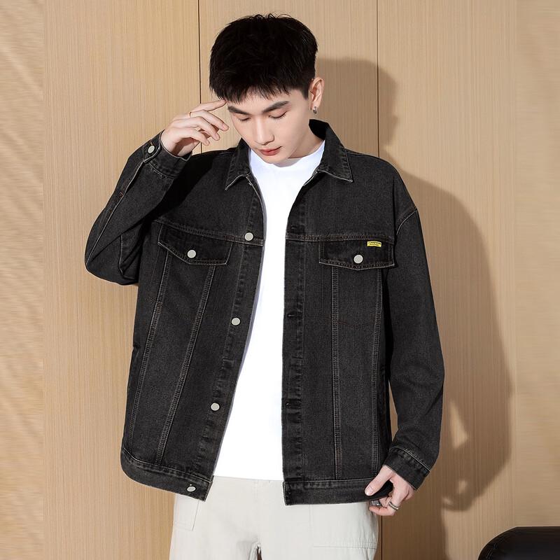 TonLion 2025 Spring Men's Lapel Hem Detail Denim Jacket