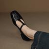 New four-season wear one-pedal single shoes square head low heel large and small size women's shoes foot cover solid color casual square heel s