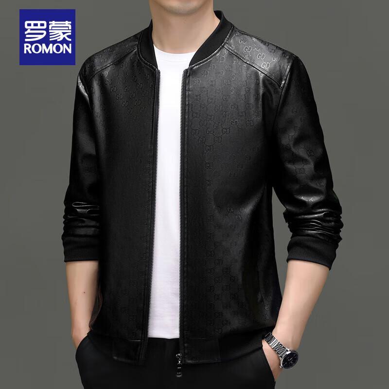 ROMON Men's Autumn/Winter Stand-Collar PU Leather Jacket