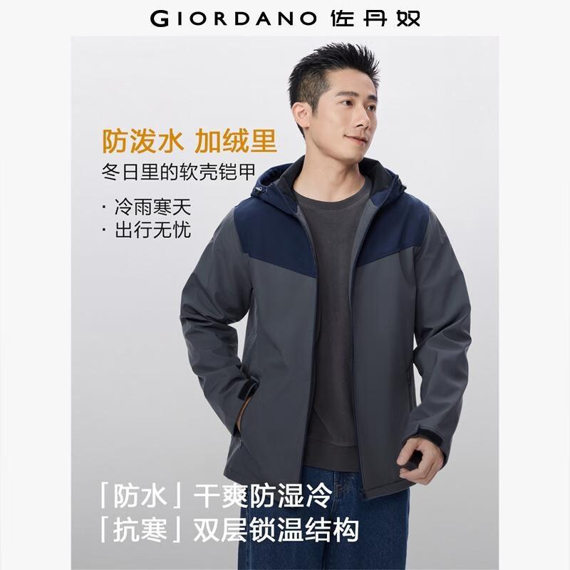 Giordano Men's Windproof Fleece-Lined Hooded Soft Shell Jacket