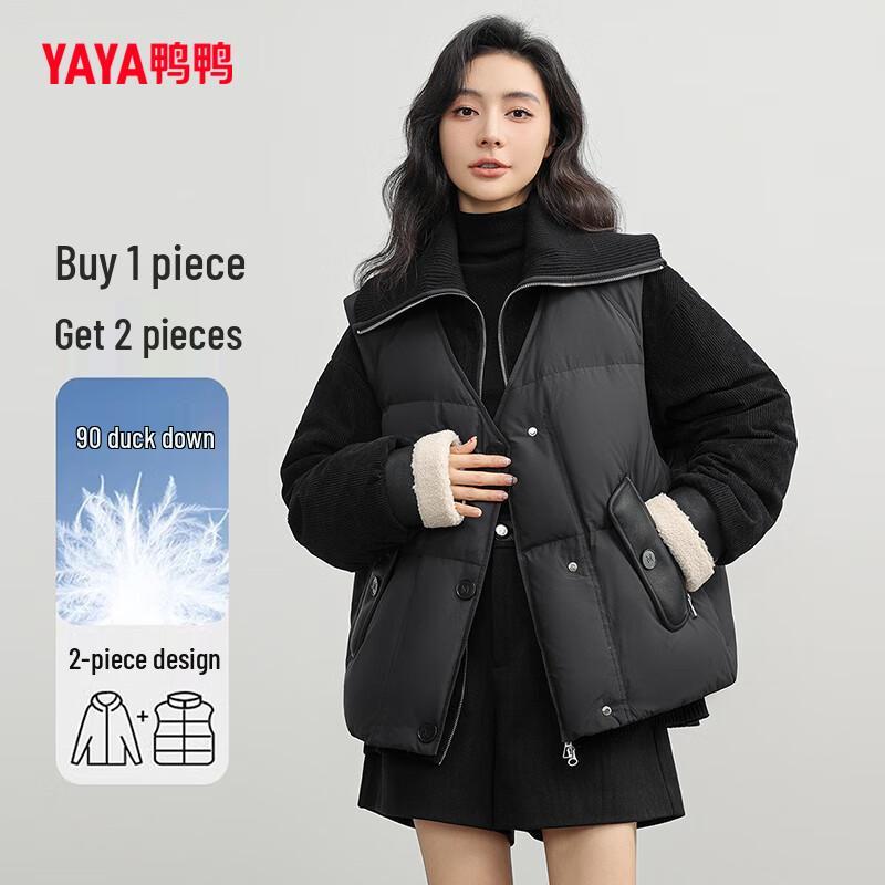 Yaya Women's Solid Color Detachable Lapel Winter Down Jacket