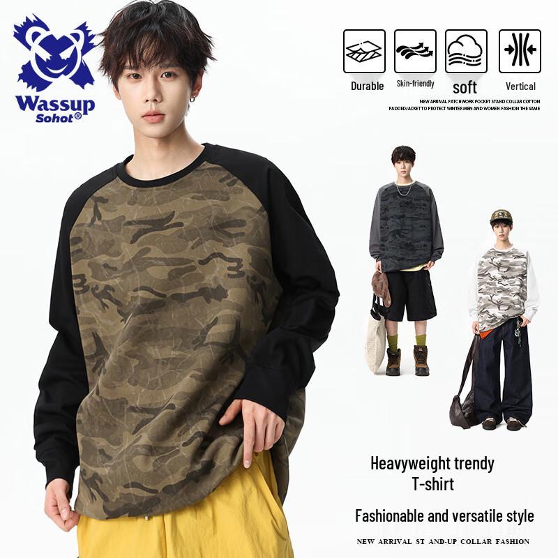 Wassup Sohot Men's Retro Camo Heavyweight Crewneck Sweatshirt