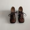Women's Coarse Heel leather Shoe Square Head Suede Before Lacing Low-top Shoe square head fashion splicing women's shoes tacones