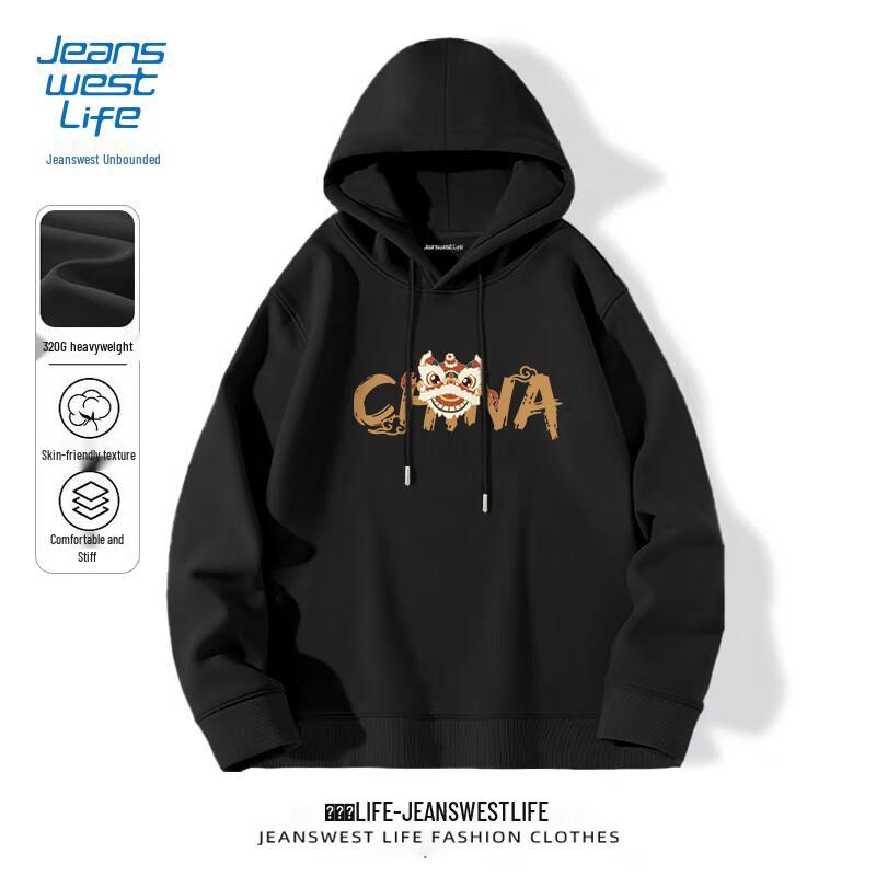 JEANSWEST LIFE Men's Guochao Lucky Lion Dance Hooded Sweatshirt