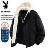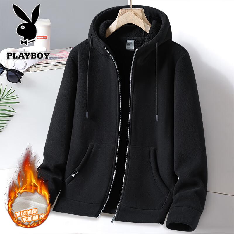 PLAYBOY Men's Autumn/Winter Fleece Lined Hooded Cardigan Jacket