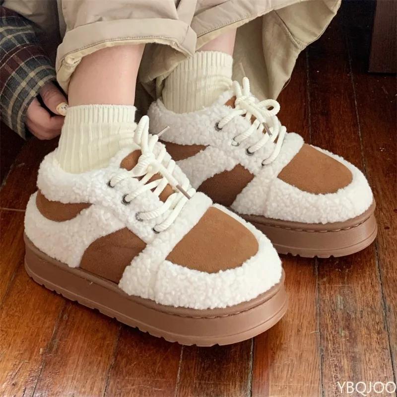 Winter Women's Platform Cotton Shoes Fashion Women Suede Fur Warm Thick Sole Casual Shoes Trend Student Snow Boots Zapatos Mujer