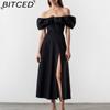 BITCED Women's Elegant Lace-Up A-Line Solid-Colour Midi Dress
