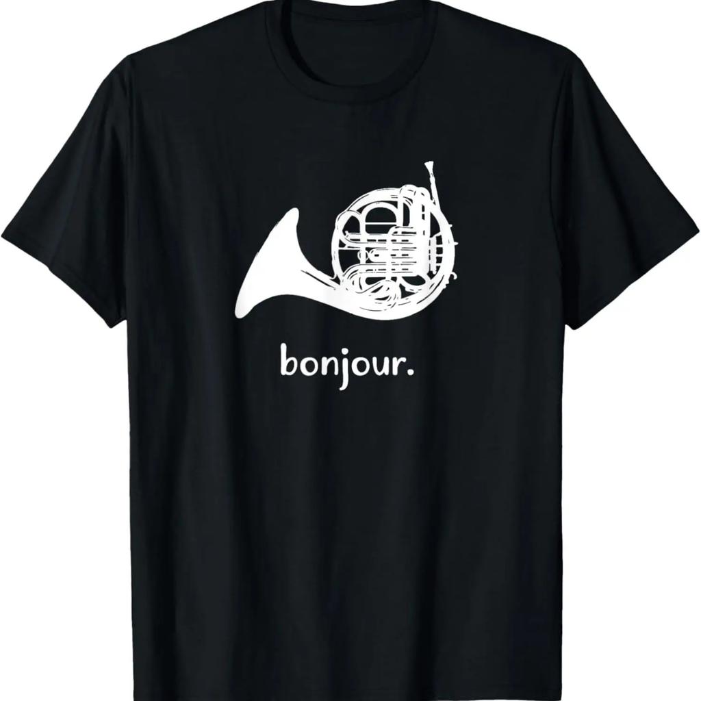 Funny French Horn T-Shirt _ Bonjour _ Band Sayings Gift T-Shirt
