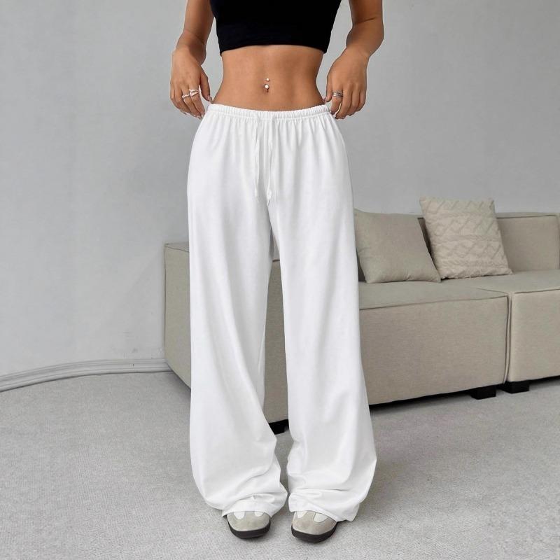 Evropsko-americké oblečení Jednobarevné kalhoty Elastický pas se zavazováním Široké nohavice Ležérní kalhoty