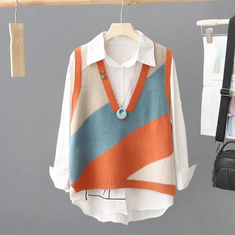 Spring Autumn Knitted Vest Tank Loose Sweater Coat Knitted Shirt Women's Wear