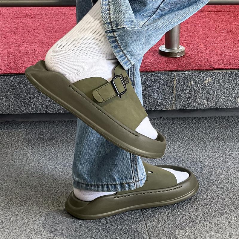 Slippers men's new outer wear casual sports thick-soled wear-resistant wading one-word beach shoes 371217 olive green-J