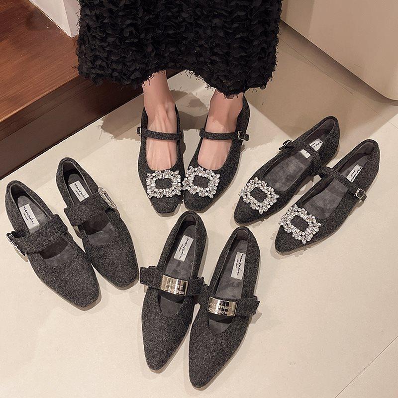 Buckle small fragrant wind plush winter 2025 rhinestone thick heel new square head gentle temperament scoop Mary Jane shoes children
