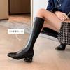 Exquisite little woman~ Korean version of temperament square head hollow thick heel side zipper large size but knee white boots women