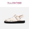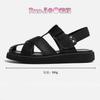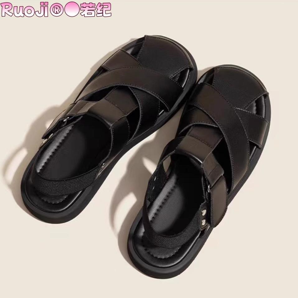 2025 summer new leather hollow woven pig cage Roman sandals women's design sense niche Velcro versatile
