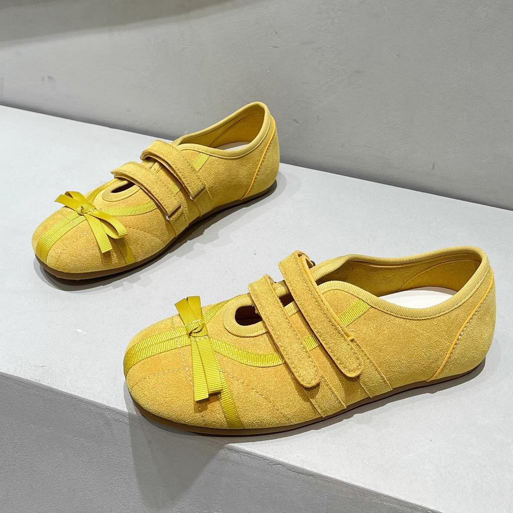 Bow yellow German training shoes women's 2025 new inner height increase dopamine foreign style niche design sense Forrest Gump tide shoes