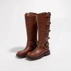 Leather retro but knee boots women's autumn 2025 new leather buckle western cowboy boots metal knight boots