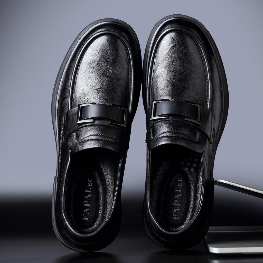 Autumn new men's business dress leather shoes one pedal loafers first layer cowhide fashion trend wedding derby shoes