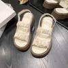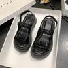 Retro thick low women's sandals 2025 summer new mid-heel Korean one-character pleated buckle Roman beach shoes women