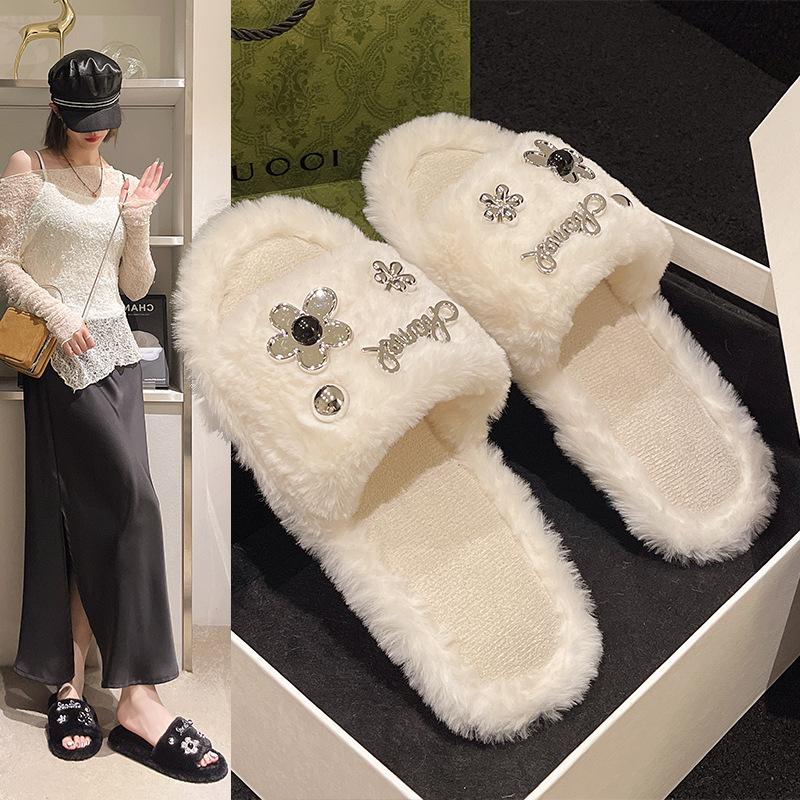 Handmade Mao Mao shoes one-word cotton mop 2025 popular household cotton slippers women wear non-slip flat plush slippers