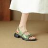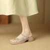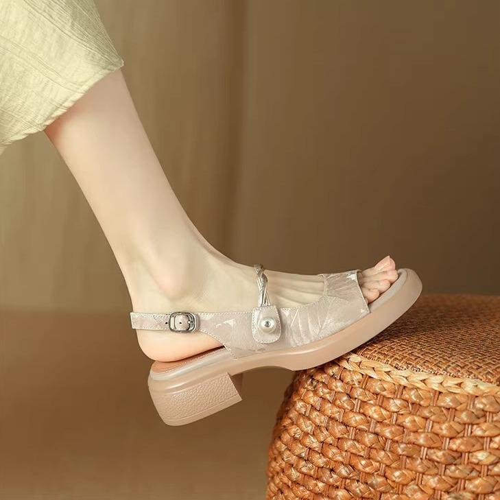 New Chinese open-toed sandals women's round head summer new thick-soled national style pearl small casual square heel women's sandals