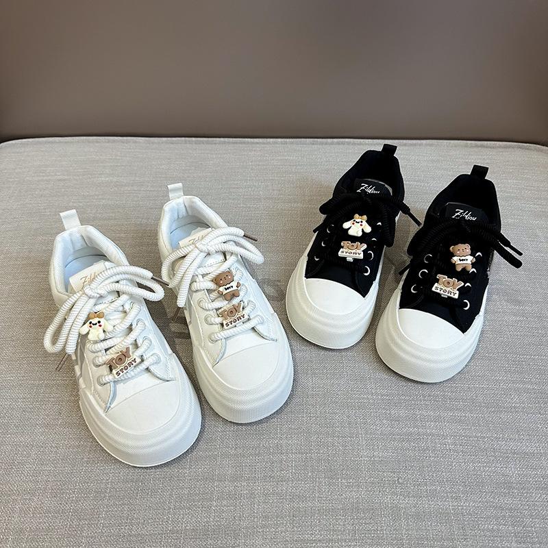 2025 autumn little white shoes new Korean version ins campus female students bear platform sports board shoes trendy casual shoes