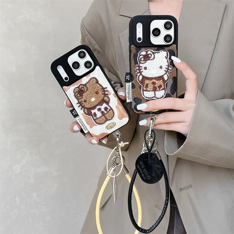 High-End Cow Print Kitty Lanyard & Embroidered Phone Case for iPhone 17/16 Pro Max/15/14