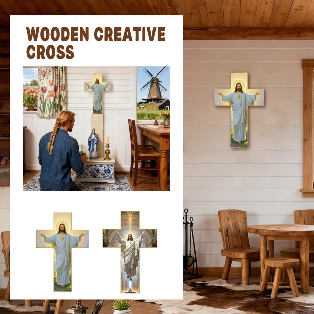 Jedinečné ručně vyráběné umění: Každý kříž je pečlivě ručně vyroben z prémiového přírodního dřeva, přičemž je zachována autentická kresba a textura, které činí každý kus. Jeho teplý, rustikální tón dodává vaší domácí dekoraci nádech přírodní krásy a posvátné elegance.