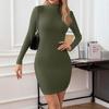 Dámské ležérní šaty s vysokým výstřihem, dlouhým rukávem, jednobarevné, přiléhavého střihu