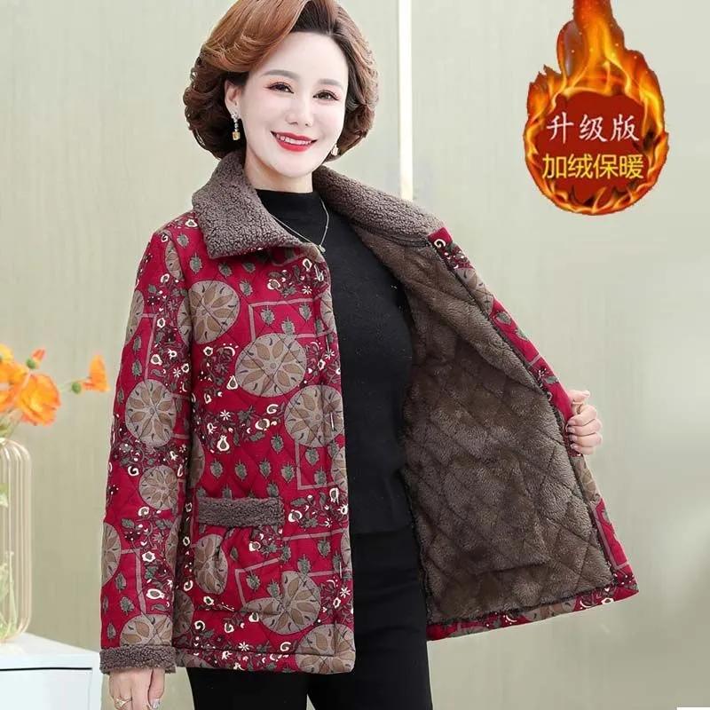 Matka Zimní Bavlněné Oblečení Plyšový Hrubý Teplý Vatovaný Kabát Středního Věku Matka Neformální Parky Starší Babička Bunda