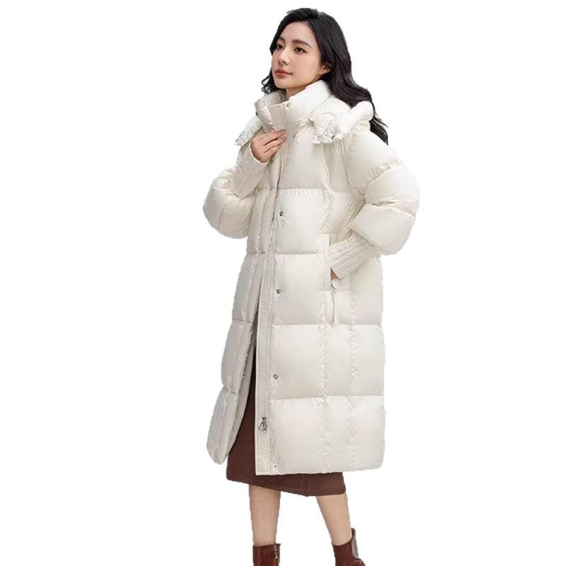 Long Down Cotton-padded Jacket Women's Winter New Thick Detachable Hat Casual Loose Cotton-padded Coat.