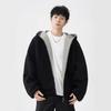 Double Zipper Hooded Sweater Coat Men's Autumn and Winter Casual Coat Thick Contrast Color Couple Cardigan.