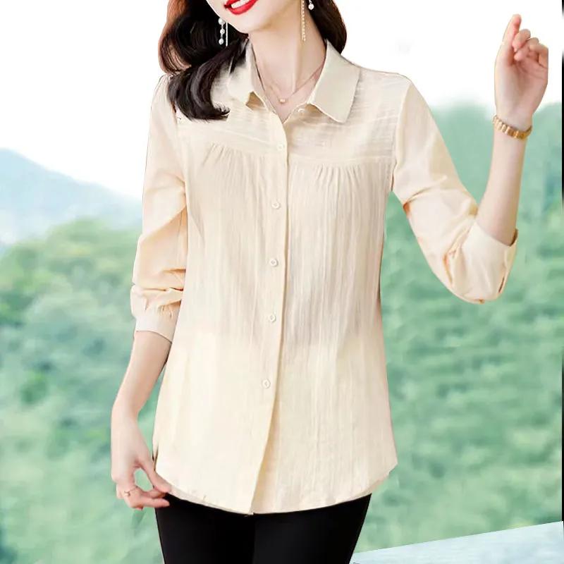 Pure Cotton Long-sleeved Shirt for Women in Spring Summer New Loose and Slim Versatile Cotton