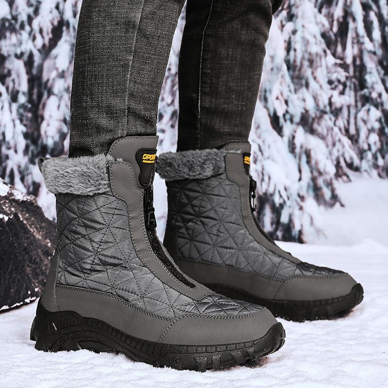 Large size front zipper snow boots men's velvet high-top cotton shoes winter waterproof large cotton boots