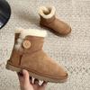 Girls' snow boots autumn and winter new sheepskin fur integrated short tube piled thickened warm cotton shoes + children's winter shoes