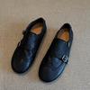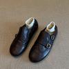 In Stock: Retro British Style Women's Genuine Leather Brogues – Carved Belt Buckle Loafers