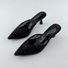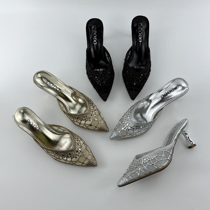 Step into elegance with these stunning stiletto mules, designed for the fashion-forward woman. Featuring a chic rhinestone-embellished cap-toe, these backless slippers offer a touch of glamour to any ensemble. The stylish cut-out mesh design provides a breezy feel perfect for summer wear. Crafted for comfort, the mules feature a durable rubber sole and a soft polyurethane lining, ensuring both support and style on every occasion. Whether dressing up for a night out or adding flair to your everyday look, these mules are a must-have addition to your shoe collection.