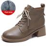 Kožené kotníkové boty na robustním podpatku v korejském stylu: Podzim/Zima Britské šněrovací retro martensky